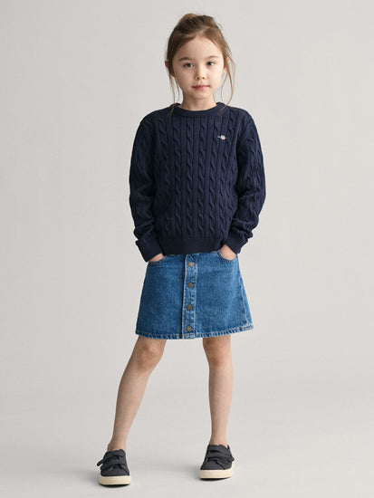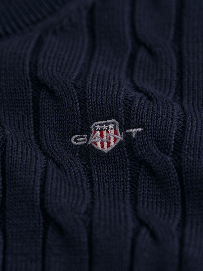 Introducing the Cotton Shield Sweater for boys, a perfect blend of style and comfort. Crafted from pure cotton fabric, this sweater ensures a soft touch and breathability, making it ideal for everyday wear. The classic blue color adds a touch of elegance, while the cable knit pattern offers a timeless appeal. Designed with a regular fit, it provides ease of movement and a flattering silhouette. Featuring full sleeves and a round neck, this sweater is perfect for layering. The pull-on closure ensures easy wear, making it a practical choice for busy mornings. Ideal for school, casual outings, or family gatherings, this sweater is a versatile addition to any wardrobe.