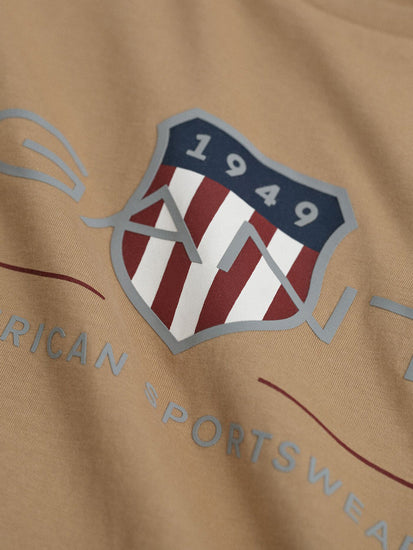 Discover the perfect blend of style and comfort with our Archive Shield T-Shirt for boys. Crafted from soft organic cotton, this brown tee offers a regular fit that ensures all-day ease. Featuring a trendy printed pattern, it adds a touch of flair to any outfit. The half sleeves and round neck design make it ideal for casual wear, while the pull-on closure ensures hassle-free dressing. Whether for school or play, this versatile t-shirt is a must-have addition to your childs wardrobe, promising durability and style.