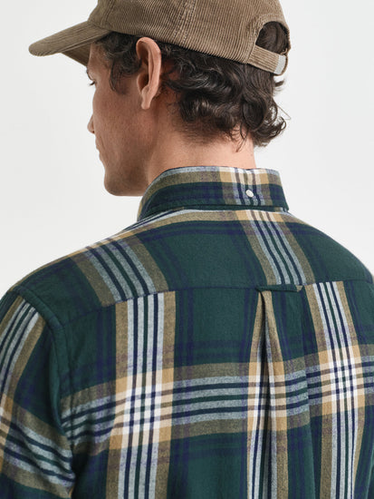 Extremely classy, this GANT shirt is created for urban men who love to flaunt their standout style. Made of fine fabric to ensure ultimate wearing comfort, it exhibits a charming mix of green and other hues. The button-down collar and windblown flannel check pattern further add to its class. Team it with a pair of jeans or chinos to make a lasting fashion statement.