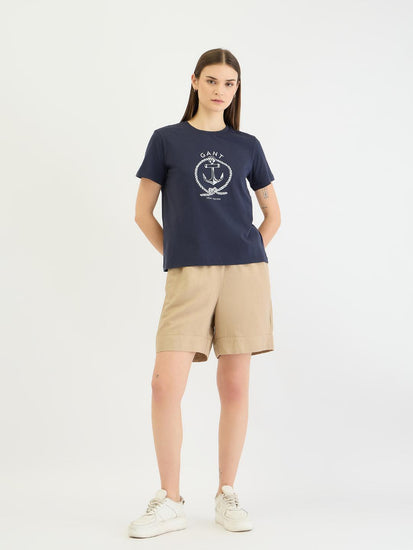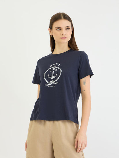Gant Women Blue Placement Print Crew Neck Tshirt
