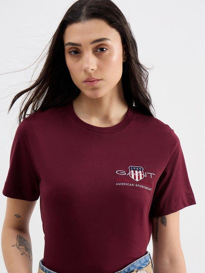 Sophisticated women with an eye for fashion will surely fall for this GANT T-shirt. Featuring a solid design with a crew neckline and short sleeves, it is finished with embroidered Archive Shield styling on the top left. It is made from soft fabric for ultimate wearing comfort. Team it with a pair of jeans, shorts, or chinos for a smart look.