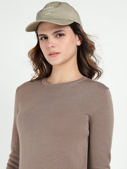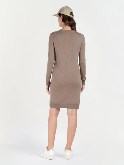 Elevate your wardrobe with GANT Women Light Brown Wool knitted solid crew neck Dress. Crafted with cozy wool fabric. This dress offers a perfect blend of style and comfort. The long sleeves and regular fit provide a flattering silhouette, while the above knee length adds a touch of sophistication. Whether you are dressing up for a special occasion or keeping it casual. This versatile pull over dress is a must-have addition to your closet. Stay chic and cozy all day long in this wardrobe staple.