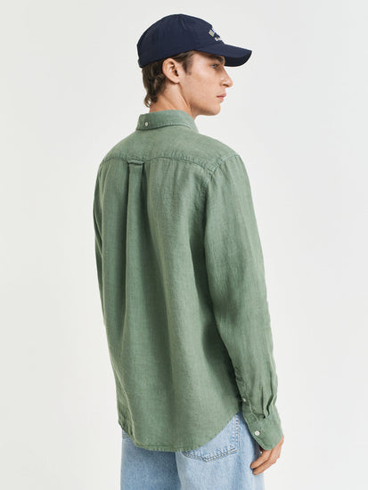 Stay cool and comfortable in this classic green linen shirt. Featuring a regular fit, full sleeves, button-down collar, and button closure, this shirt is perfect for any casual occasion. Made from breathable linen, it's ideal for warm weather.