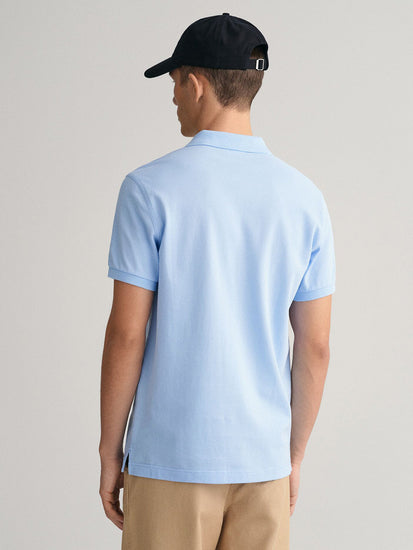 Gant Men Blue Solid Collared Short Sleeves Polo Tshirt