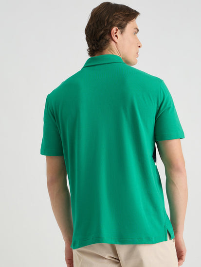 Effortlessly cool, this green cotton polo boasts a bold colorblock design. The regular fit and short sleeves offer comfort and style, while the button closure adds a touch of sophistication. Perfect for casual days or smart casual occasions.