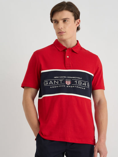 Gant Men Red Regular Fit Block Print Polo Tshirt