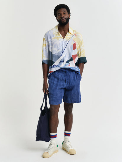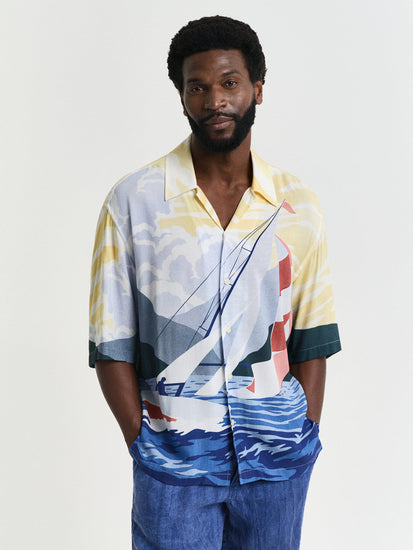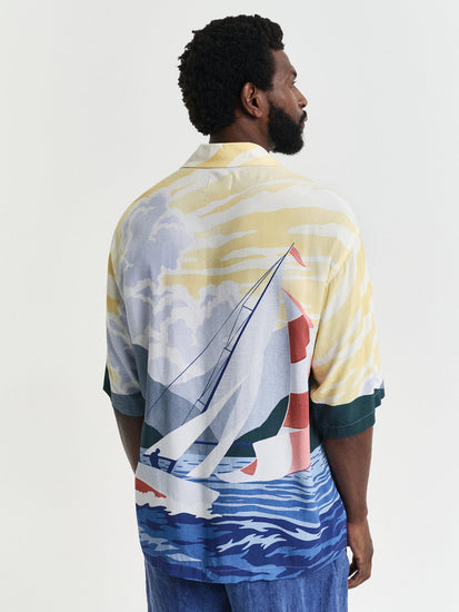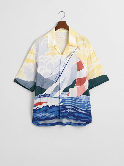 Gant Men Red Cuban Collar Short Sleeves Shirt