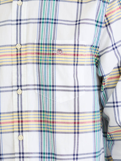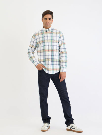 A classic and versatile choice for any man's wardrobe, this white button-down shirt features a timeless check pattern for a touch of sophistication. Crafted from soft and breathable cotton, it offers all-day comfort in a regular fit. The full sleeves and button-down collar provide a polished look, while the button closure ensures a secure and comfortable fit. Perfect for both casual and formal occasions, this shirt is a must-have for any stylish gentleman.