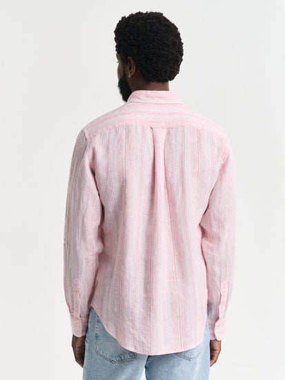Gant Men Pink Regular Fit Striped Linen Shirt