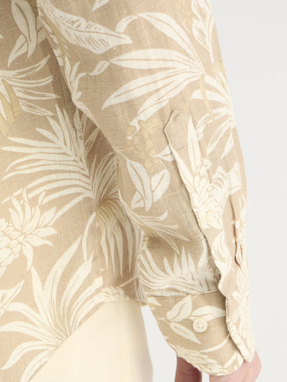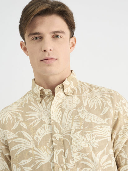 Embrace effortless style with our beige linen shirts. Featuring a delicate floral pattern, these full-sleeve button-downs offer breathable comfort and a relaxed, untucked fit. Crafted from pure linen, they exude a timeless charm, perfect for warm days and casual gatherings.