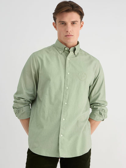 Embrace the verdant allure of our green logo shirts. Crafted from pure cotton, these regular-fit shirts offer a timeless appeal with full sleeves, button-down collars, and a classic button closure. The subtle logo pattern adds a touch of sophistication, making them perfect for both casual and smart casual occasions.