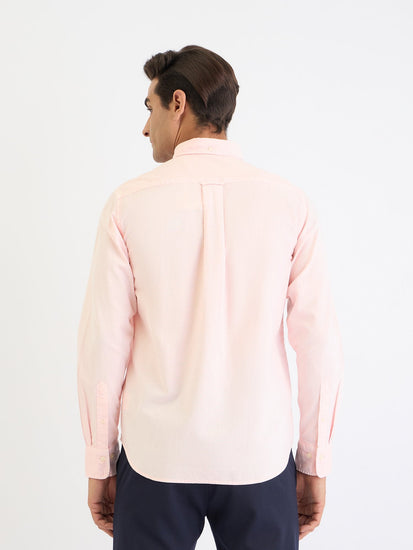 This classic men's shirt is crafted from soft, breathable organic cotton for all-day comfort. The regular fit ensures a flattering silhouette, while the full sleeves and button-down collar add a touch of sophistication. The solid pink hue is versatile enough for any occasion, and the button closure provides a secure and polished finish.