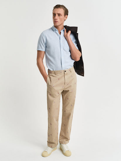 Gant Men Blue Solid Button-Down Collar Short Sleeves Shirt