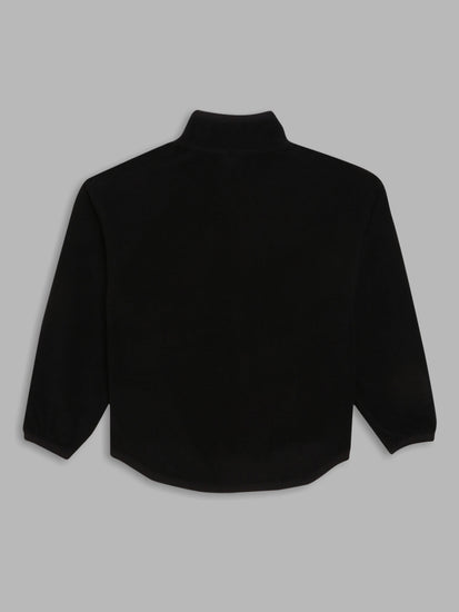 He'll be the coolest kid on the block in this black color-blocked jacket. Featuring a stand collar, full sleeves, and a zip closure, this relaxed fit jacket is made from recycled polyester for a sustainable style.