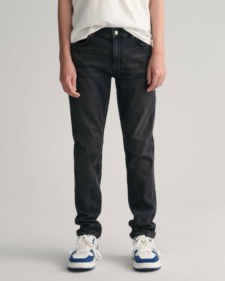 Gant Boys Black Washed Mid-Rise Slim Fit Jeans