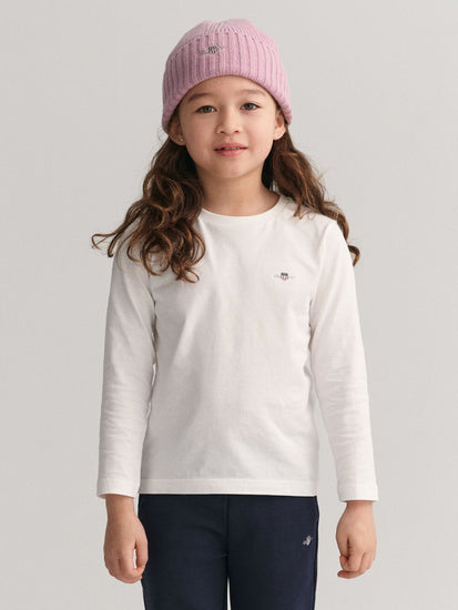 Introducing our Shield T-Shirt for boys, a perfect blend of style and comfort. Crafted from pure cotton, this white tee offers a soft touch and breathability, ideal for everyday wear. The regular fit ensures ease of movement, while the solid pattern adds a classic touch. Featuring full sleeves and a round neck, it provides a versatile look suitable for any occasion. The pull-on closure makes dressing hassle-free. Whether for school or play, this t-shirt is a wardrobe essential for your young one.