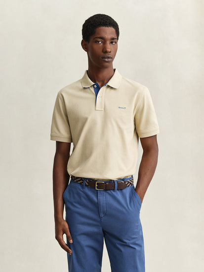 Gant men beige contrast pique polo t-shirt