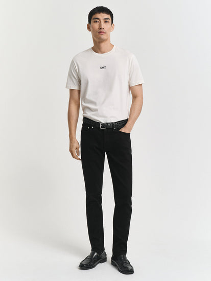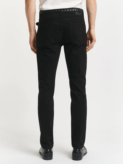 A sharp slim fit and solid black shade make these jeans a wardrobe essential. Built with four pockets they keep the look minimal yet practical. Made using cotton spandex fabric they offer comfort for daily wear. Easy to style with shirts or tees they stay in trend as an everyday staple.