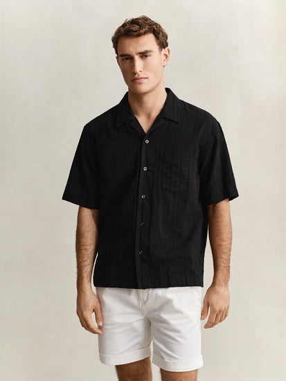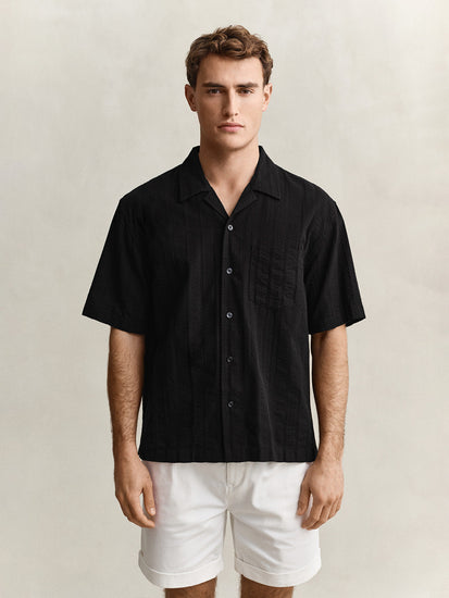 men black dobby striped relaxed cotton shirt
