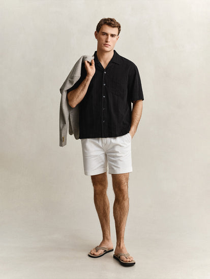 Gant men black dobby striped relaxed cotton shirt