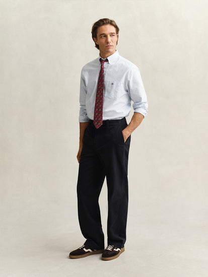 Elevate your wardrobe with the timeless sophistication of the GANT Men Blue Striped Regular Fit Classic Oxford Shirt. Crafted from premium quality fabric, this shirt combines classic style with modern comfort. The regular fit ensures a flattering silhouette, while the blue stripes add a touch of subtle elegance. Perfect for both casual and formal occasions, this shirt is a versatile essential for any man's closet. Experience the perfect blend of style and comfort with this iconic Oxford shirt from GANT.