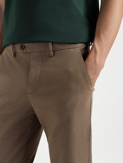 This GANT Men Brown Cotton woven Chinos Trouser crafted from high-quality cotton.This slim-fit chinos offer both comfort and style. The mid-rise design and solid button detail provide a modern twist on a classic wardrobe essential. Perfect for any occasion.This versatile trousers will effortlessly take you from work to weekend. Upgrade your wardrobe with these timeless chinos that will keep you looking sharp and feeling confident all day long.