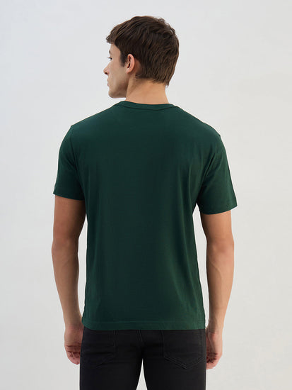 Gant Men Green Solid Pure Cotton Round Neck T Shirt