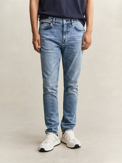 Elevate your everyday style with the GANT Men Blue Slim Fit Jeans. Crafted from premium denim, these jeans offer a sleek and modern silhouette that effortlessly flatters your figure. The slim fit design provides a tailored look that is both comfortable and stylish, perfect for any occasion. With a timeless blue wash, these jeans are versatile and easy to pair with any outfit. Whether you're dressing up for a night out or keeping it casual for the weekend, these GANT jeans are a must-have addition to your wardrobe.