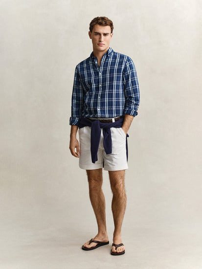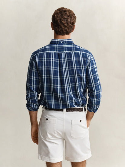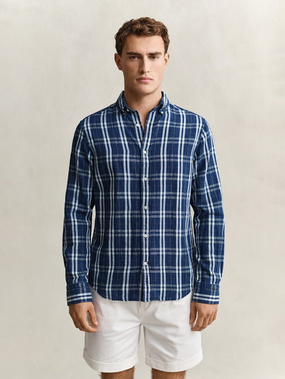 Gant men navy blue check linen blend shirt