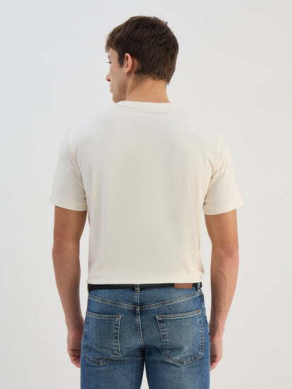 men off white solid pure cotton round neck t shirt