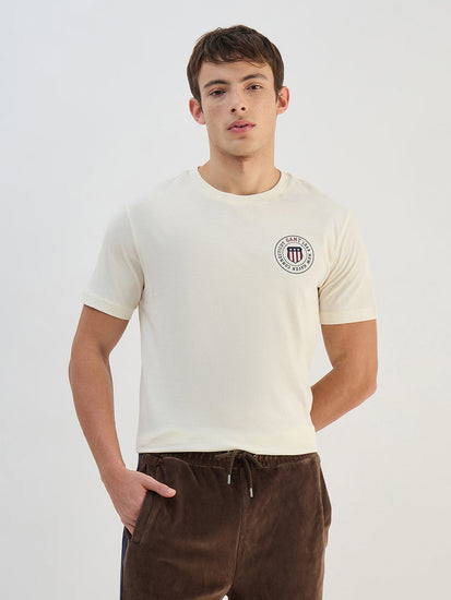 Gant Men Off White Solid Pure Cotton Round Neck T Shirt