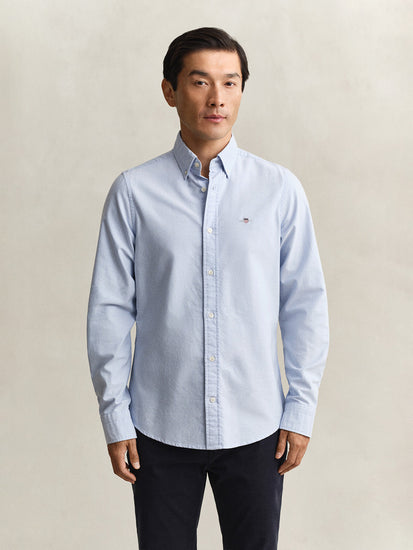 Elevate your everyday style with the GANT Men Blue Slim Fit Oxford Shirt. Crafted from high-quality materials, this shirt offers a modern slim fit that effortlessly flatters your silhouette. The timeless blue color adds a touch of sophistication to any outfit, making it the perfect versatile piece for both casual and formal occasions. With its classic Oxford design and impeccable craftsmanship, this shirt is a must-have staple in any man's wardrobe. Experience comfort, style, and quality all in one shirt with GANT.