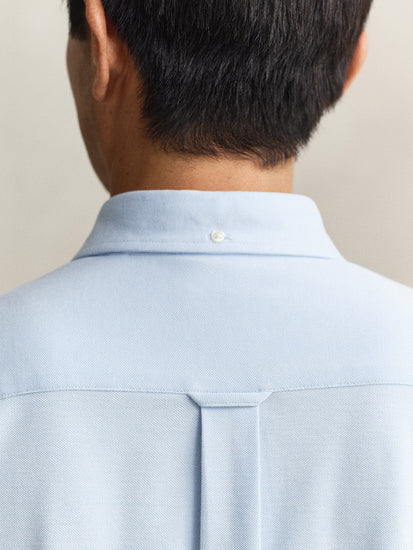 Elevate your casual style with our GANT Men Blue Jersey Pique Stretch Shirt. Made from a comfortable, stretchy fabric, this shirt offers a tailored fit that moves with you throughout the day. The classic blue color adds a touch of sophistication to any outfit, while the pique texture adds a subtle touch of texture. Whether you're heading to the office or out for a weekend adventure, this versatile shirt is sure to become a wardrobe staple. Upgrade your look with GANT.