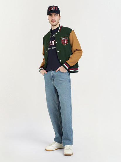 Elevate your casual style with the GANT Mens Blue Cotton knitted logo crew neck T-shirt. Crafted from soft, breathable cotton. This short-sleeved pull-over features a classic crew neck design and a regular fit for all-day comfort. The iconic GANT logo adds a touch of sophistication to your look, making it perfect for both lounging at home and running errands. Whether you are pairing it with jeans for a laid-back vibe or layering it under a blazer for a more polished ensemble. This versatile t-shirt is a must-have staple in any mans wardrobe.