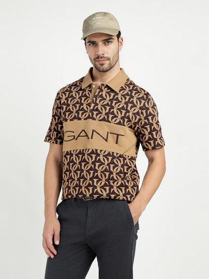 Elevate your casual style with the GANT Men Brown & Beige Cotton knitted logo polo neck T-shirt. Crafted from soft cotton. This polo shirt boasts a regular fit and short sleeves for ultimate comfort. The classic logo design adds a touch of sophistication to your look, making it perfect for everyday wear or special occasions. Whether you are heading to the office or out for a weekend adventure. This versatile piece will keep you looking sharp and feeling great. Upgrade your wardrobe with this timeless essential.