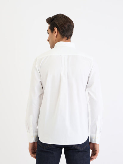 This classic white shirt is a wardrobe essential for any man. Crafted from soft, breathable cotton, it features a regular fit for a comfortable and flattering silhouette. The full sleeves and button-down collar add a touch of sophistication, while the button closure ensures a secure and polished look. Perfect for both casual and formal occasions, this versatile shirt can be dressed up or down with ease.