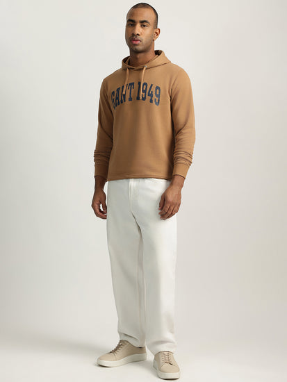 Embrace comfort and style with this brown hooded sweatshirt, crafted from soft poly-cotton fabric. Featuring a trendy typography pattern, its full sleeves and pull-on closure make it perfect for casual outings or cozy nights in. Elevate your wardrobe with this versatile piece that effortlessly blends fashion and functionality.