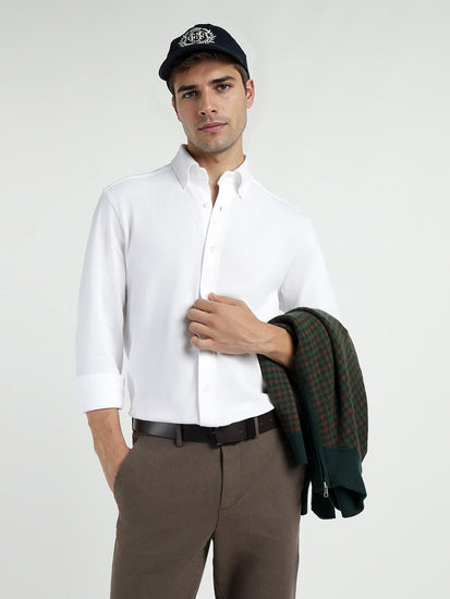 Elevate your wardrobe with GANT Men White Cotton woven shirt. Crafted from premium cotton. This shirt features a classic button-down collar and long sleeves, perfect for both casual and formal occasions. The regular fit ensures a comfortable wear, while the solid white color adds a touch of sophistication to any outfit. Whether you are dressing up for a special event or simply want to elevate your everyday look. This shirt is a versatile and timeless addition to any mans closet. Experience quality craftsmanship and effortless style with GANT.