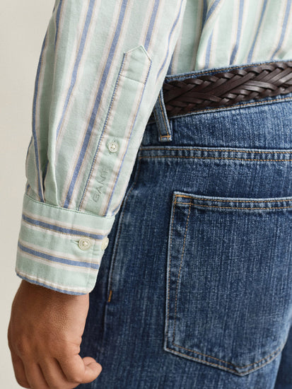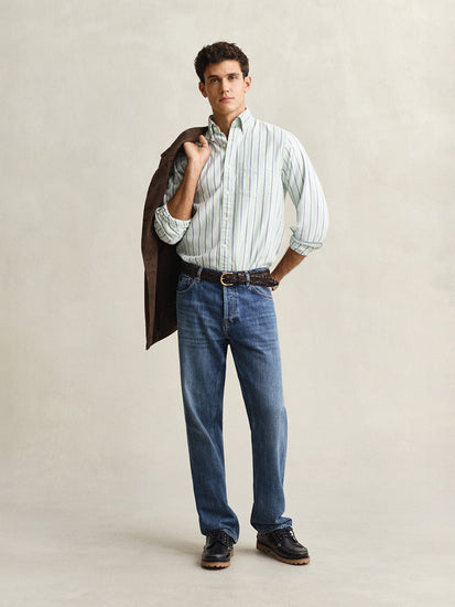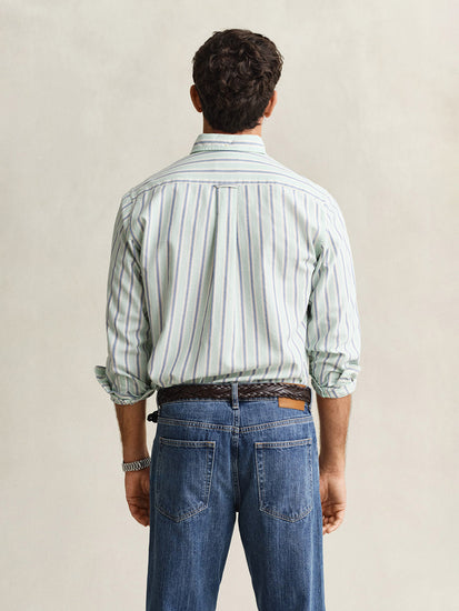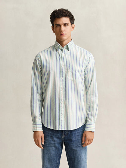 GANT Men Green Striped Regular Fit Oxford Shirt