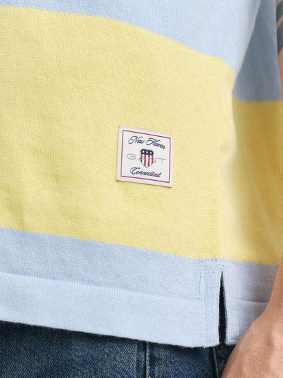 Embrace effortless style with this relaxed fit blue striped polo. Crafted from a soft cotton blend, it offers breathable comfort and a timeless appeal. The classic polo collar adds a touch of sophistication, while the short sleeves keep you cool and comfortable. Perfect for casual outings, weekend adventures, or a relaxed workday look.