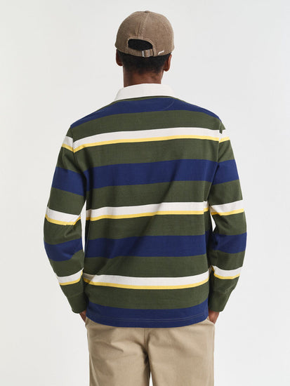 Introducing our Heavy Rugger T-Shirt, a perfect blend of style and comfort for the modern man. Crafted from pure cotton, this green t-shirt features a classic horizontal stripes pattern that adds a touch of sophistication to your casual wardrobe. Designed with a regular fit, it ensures ease of movement while maintaining a polished look. The full sleeves and polo collar offer a timeless appeal, making it suitable for various occasions. The button closure adds a refined finish, making it an essential addition to your collection.