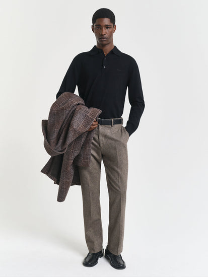 Its time to add a classic touch to your wardrobe with this mens sweater made from 100% merino wool fabric. The black fabric has a collar and full sleeves. Straight fit makes it easy to wear. Non-stretchable fabric keeps it warm & soft. The solid trend look is suitable for casual or office wear.