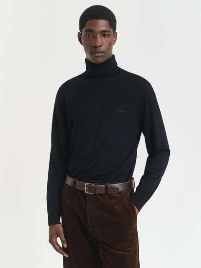 This mens sweater is made from 100% merino wool fabric. It has a high neck & full sleeves. Straight fit with solid black fabric gives a classic look. Non-stretchable fabric keeps it warm & comfortable. Pull-over style makes it easy to wear. The extrafine wool fabric adds a premium touch suitable for casual & office wear.