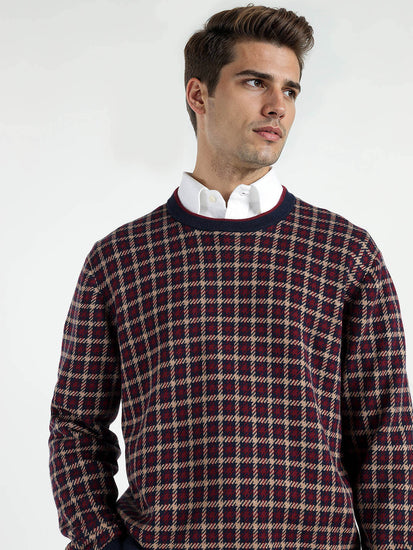 This GANT Men Dark Blue blended knitted checked crew neck Sweater crafted from a soft blend of fabrics. This regular fit pullover offers both style and comfort. The classic check pattern adds a touch of sophistication, while the long sleeves and crew neck design make it perfect for layering or wearing on its own. Whether you are heading to work or a weekend outing. This versatile sweater is sure to keep you looking sharp and feeling cozy all day long.