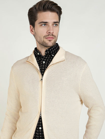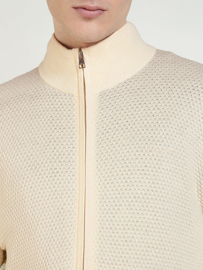 Introducing the GANT Men Cream blended knitted Sweater, a versatile and stylish addition to your wardrobe. This Sweater features a comfortable mock neck and long sleeves, perfect for layering in cooler weather. The textured knit adds a touch of sophistication, while the zip closure and regular fit ensure a modern silhouette. Whether you are heading to the office or out for a casual weekend outing. This Sweater will keep you looking sharp and feeling confident. Upgrade your outerwear collection with this must-have piece from GANT.