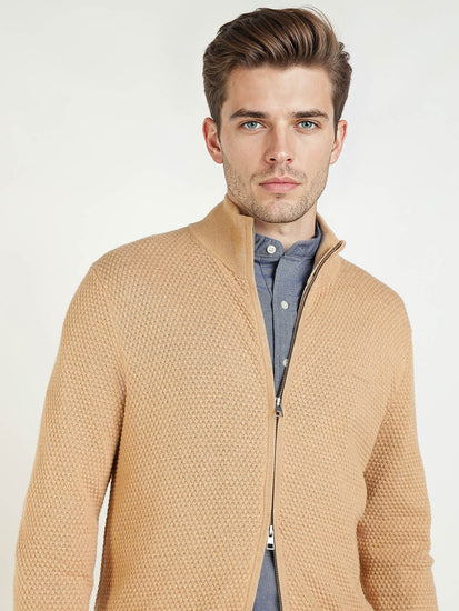 This versatile Textured Sweater piece features a modern mock neck, long sleeves, and a sleek zip closure for a stylish touch. The regular fit ensures a comfortable and flattering silhouette, perfect for any occasion. Crafted from a high-quality blend. This Sweater offers both warmth and breathability, making it a perfect choice for transitional weather. Add a touch of sophistication to your look with this must-have piece that seamlessly combines style and functionality.