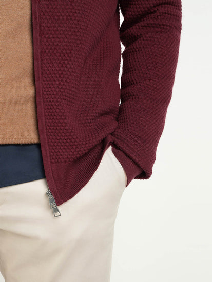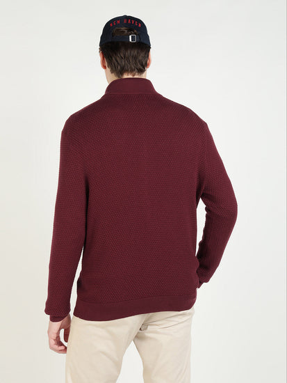 Elevate your casual-cool style with the GANT Men Maroon blended knitted Sweater. Crafted with a textured mock neck and long sleeves. This zip-up jacket offers a perfect blend of comfort and sophistication. The regular fit ensures a tailored look, while the maroon hue adds a touch of modern flair to any outfit. Whether you are running errands or heading out for a night on the town. This versatile sweater is a must-have addition to your wardrobe. Stay effortlessly stylish with GANT.