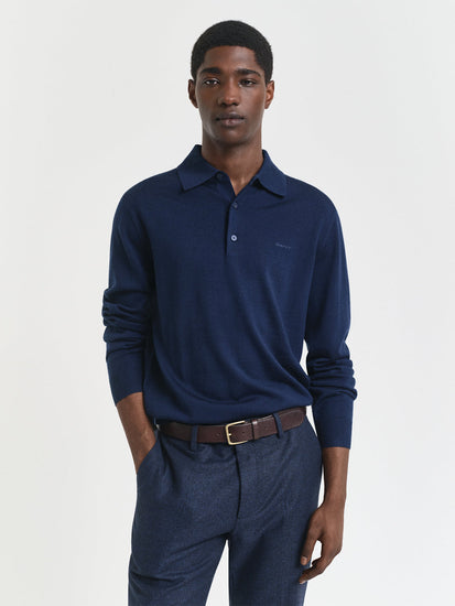 Refresh your winter look with this mens sweater in marine blue fabric. It is made from 100% merino wool fabric that feels soft yet warm. Designed with a collar & full sleeves it comes in a straight fit. The solid style follows the current trend. Non stretchable fabric makes it simple & comfortable for everyday use.