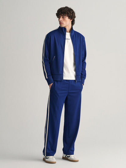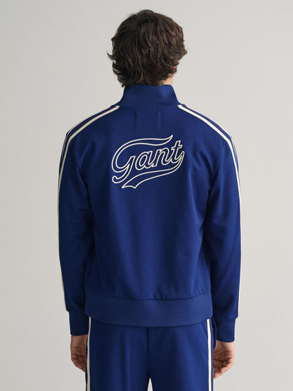 Gant men navy blue embroidered spread collar full sleeves front-open sweatshirt