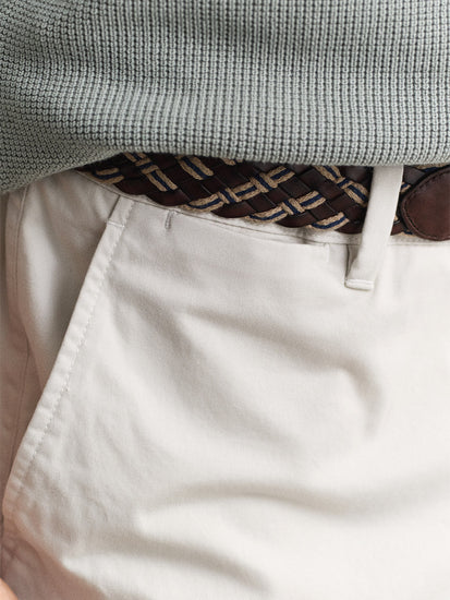 Elevate your wardrobe with our GANT Men Off White Slim Fit Classic Chino Trouser. This timeless piece offers a modern slim fit design that flatters every body type, while the classic off-white color adds a touch of sophistication to any outfit. Made from high-quality materials, these trousers are durable and comfortable, perfect for all-day wear. Whether you're dressing up for a special occasion or keeping it casual for a day out, these chinos are a versatile must-have addition to your closet. Experience style and comfort with GANT Men Off White Slim Fit Classic Chino Trouser.